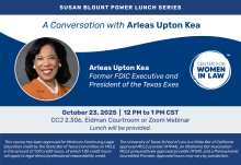 Jennifer Banda, Director of the Center for Women in Law, hosted a conversation with Arleas Upton Kea, former Deputy to the Chairman for External Affairs at the Federal Deposit Insurance Corporation (FDIC) and current President of the Texas Exes, the Alumni Ass